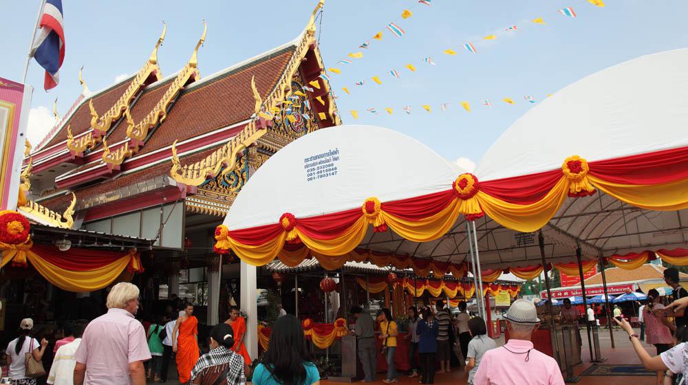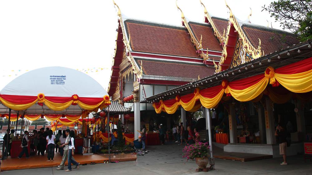 アユタヤの南東にあるワット・パナン・チューン(Wat Panan Choeng)。入り口付近の様子ですが、参拝客で大変賑わってます。
