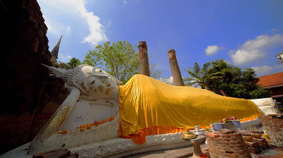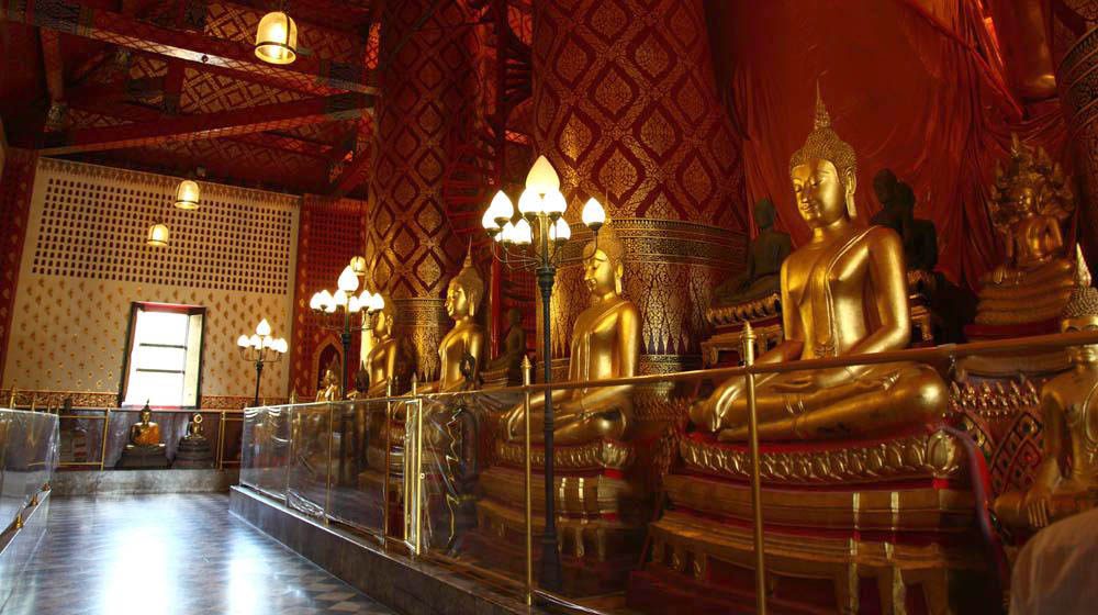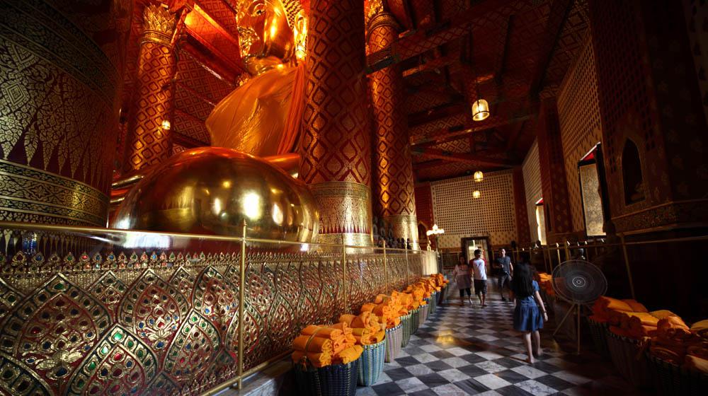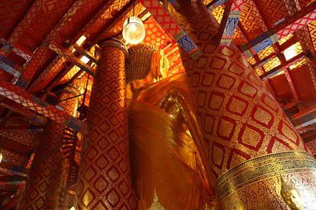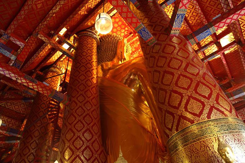 高さ19mもある座仏像が有名で、アユタヤが1350年に首都となる以前の1334年、今からおよそ年前に作られ(日本で言えば室町時代が始まった頃でしょうか)、"Luang Po To"(ルアン・ポー・・トー)と呼ばれています。中国系の人たちには、貿易や移住のための航海の神、"Sum Po Hud Kong"(サム・ポー・フッド・コン)として崇拝されているようですね。アユアタがビルマにより幾度となく繰り返さし破壊された中から奇跡的に残った寺院でもあります。(島外だったのが大きな理由でしょうが、良かったですね~
