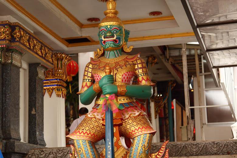 正面入り口付近にあるヤック(守護神)。バンコクの王宮を筆頭にタイの寺院で良く見られるものですね。 |