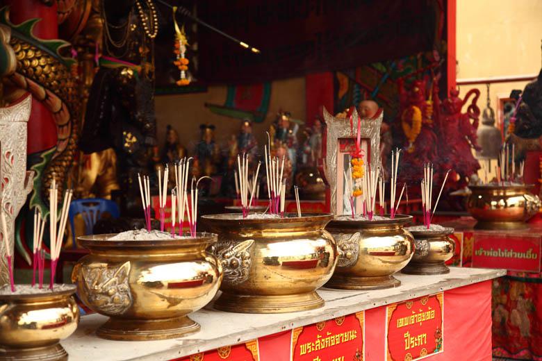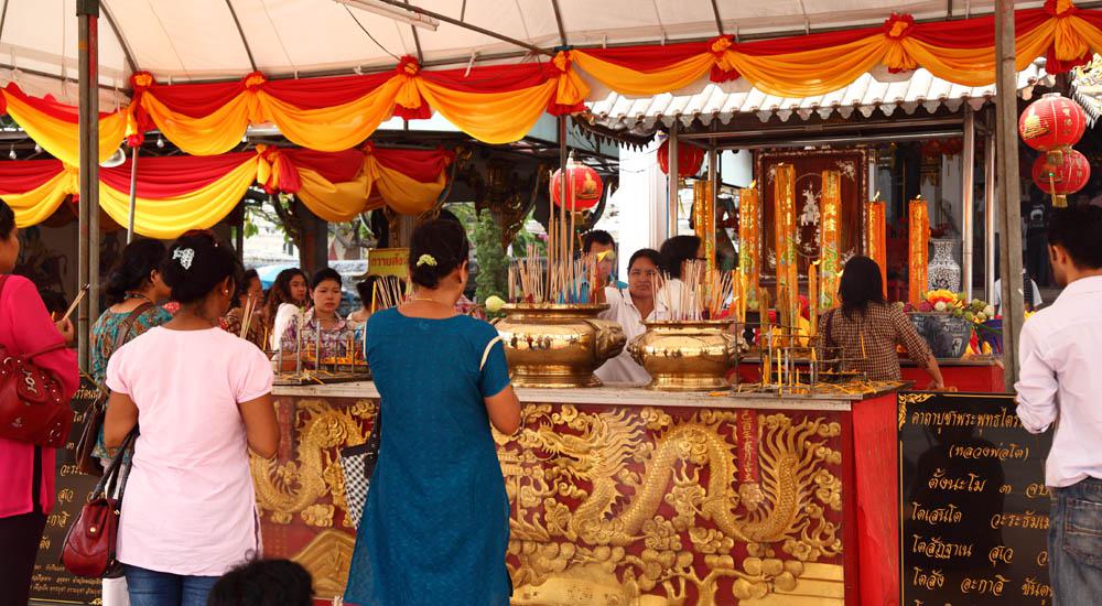 この寺院、タイの王子と中国の王女との愛の神話が元になっているとも言われ、中国系の人たちの信仰を集めているようです。