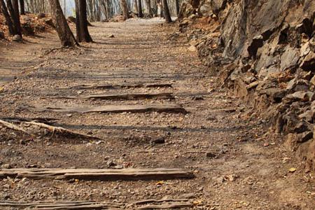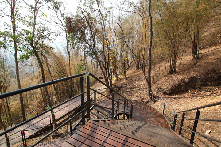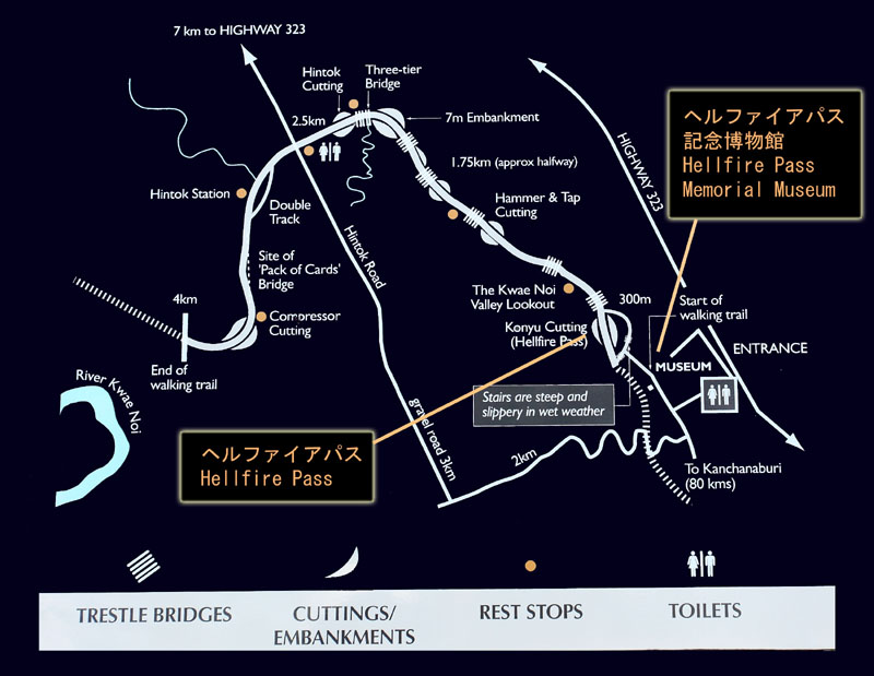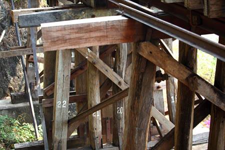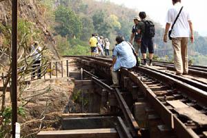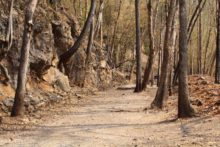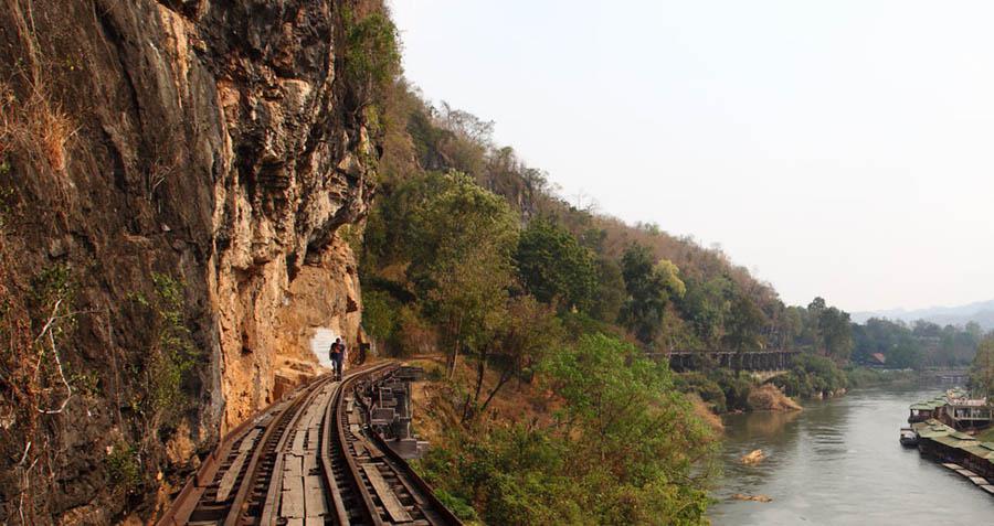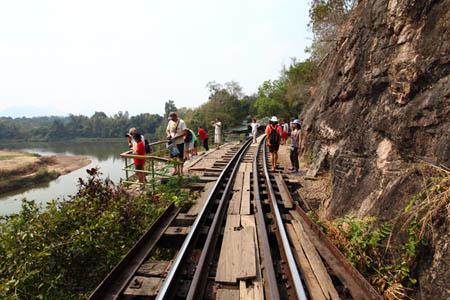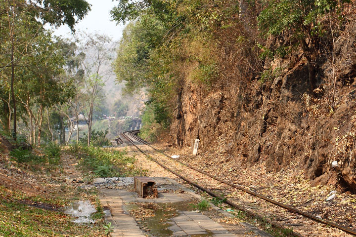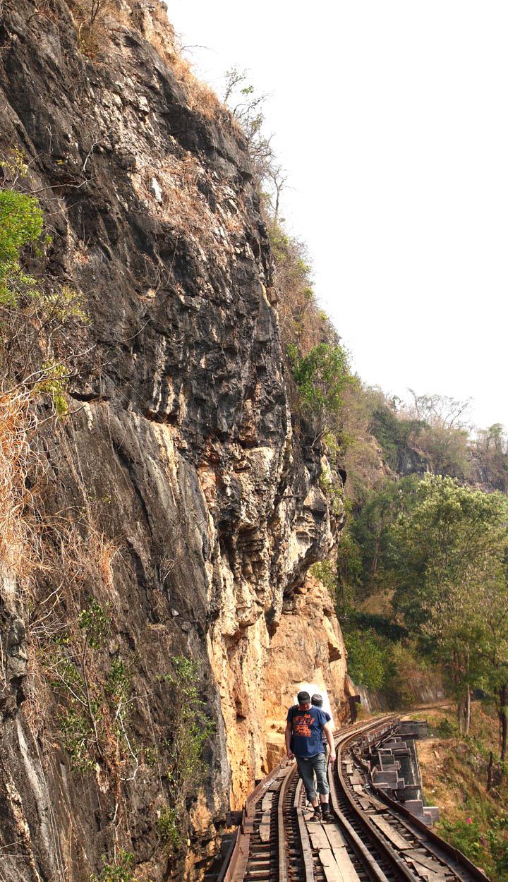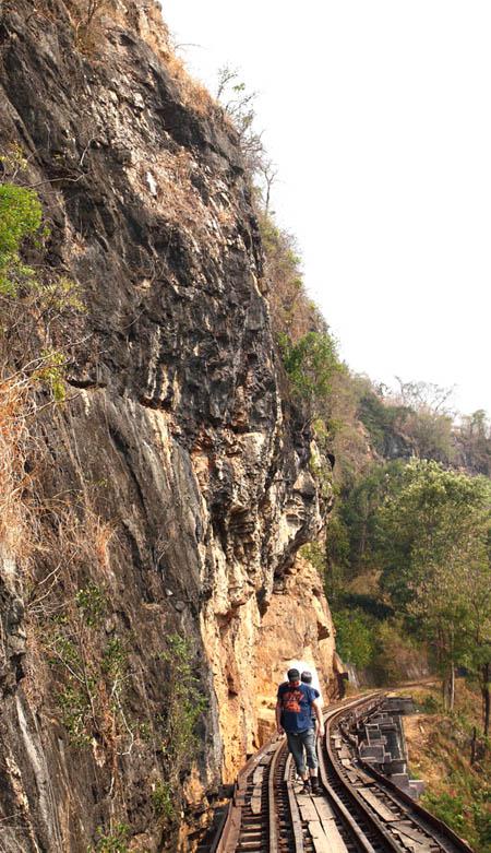 このあたりは有名な「アルヒル桟道橋」(タムクラセー橋)のある所。第二次世界大戦中、日本軍のビルマ戦線への唯一の補給路である泰緬鉄道。その建設において、クウェー・ノイ川に沿って岩壁スレスレに建設された木造橋がこのアルヒル桟道橋。