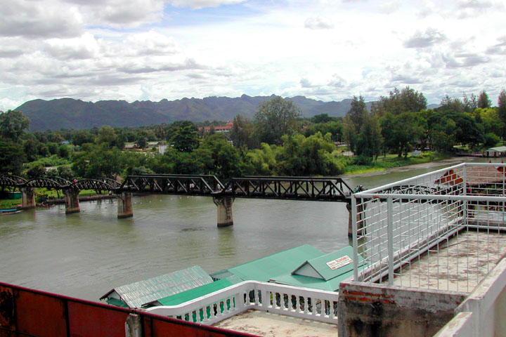 屋上から見下ろした風景。クウェー川鉄橋が見えますね。 |