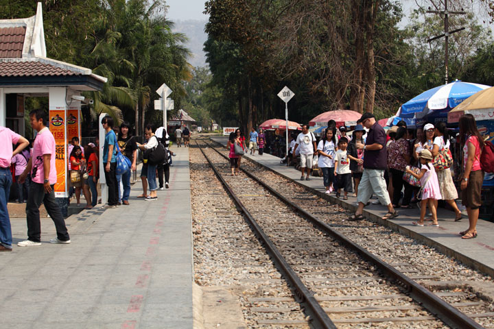 タム・クラセー橋駅から少し行った次の駅、クラセー洞窟(タム・クラセー)のあるタムクラセー駅。こちらは、お土産屋さんとかも沢山あり、観光客も非常に多いです。 |