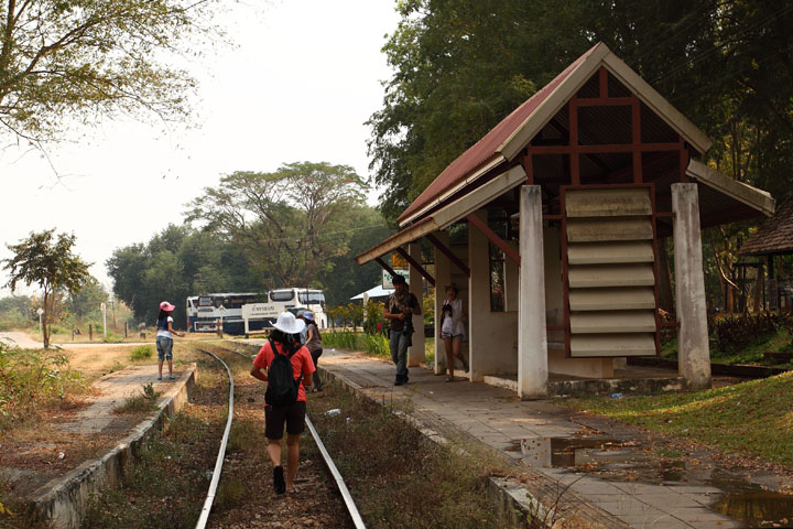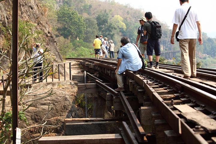クウェー川鉄橋駅と同じように、観光客が線路の上を歩いて楽しんでますね。 |