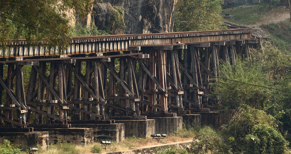 第2次世界大戦時(1943年)、日本軍によりビルマへ侵攻するために建設されたタイ・ビルマ(ミャンマー)をつなぐ泰緬鉄道においてクウェー・ヤイ川に架けられた鉄道橋で、現地の人や連合軍捕虜の莫大な犠牲の上、建設されました。