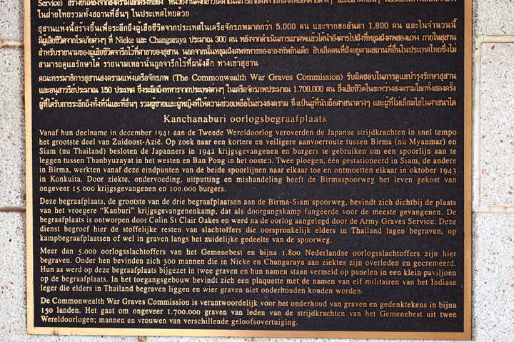 この鉄道建設に従事させられた連合国の捕虜のうち、多くの方がその劣悪な環境の中で犠牲となり、ここには6982人が眠っています。