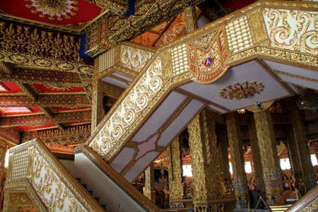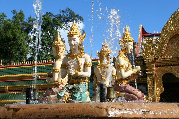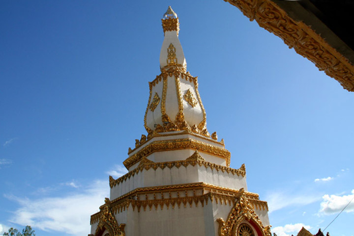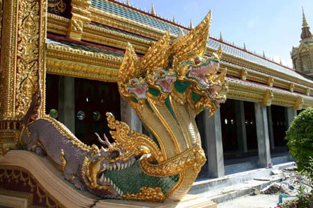 昔々にロイ・エットに来た時も、このページに紹介しているとても美しい寺院「プラ・マハ・チェディ・チャイモンコン」(Phra Maha Chedi Chaimongkon)に寄っただけですが、今回(2008年)もウボン・ラーチャターニーからムクダハーンに行く途中にこの寺院によっただけでした。^-^;)
