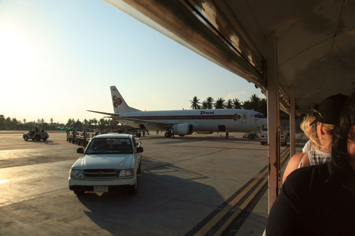 飛行機が基本: 日本からバンコクへ。バンコクからサムイ島へ、というルート。