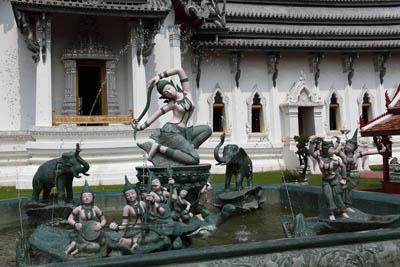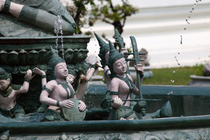 the Sanphet Prasat Palace 06 Angels at the fountain in the garden.They are dancing or playing musical instruments. |