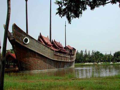 Thai Junk In the old days, Thai junks like this used to be moored along the banks of the Chao Phraya River from the estuary in Samut Prakan Province all the way up to Bangkok. They gradually disappeared some 50 years ago. |