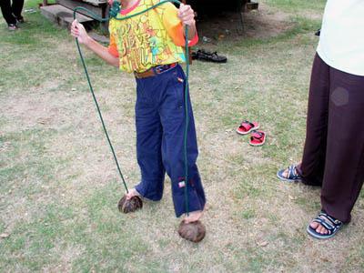 Stilts Called " Takeuma" (Bamboo horse) in Japanese. Kids are enjoying them. :) |