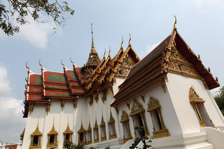 | The Dusit Maha Prasat Palace (The Grand palace) The Dusit Maha Prasat Palace in the Grand Palace in Bangkok. The palace was built by King Rama I in 1806 A.D. The structure is a cruciform building with large high roofs. The Palace is now the only remaining example of the traditional Thai palace. |