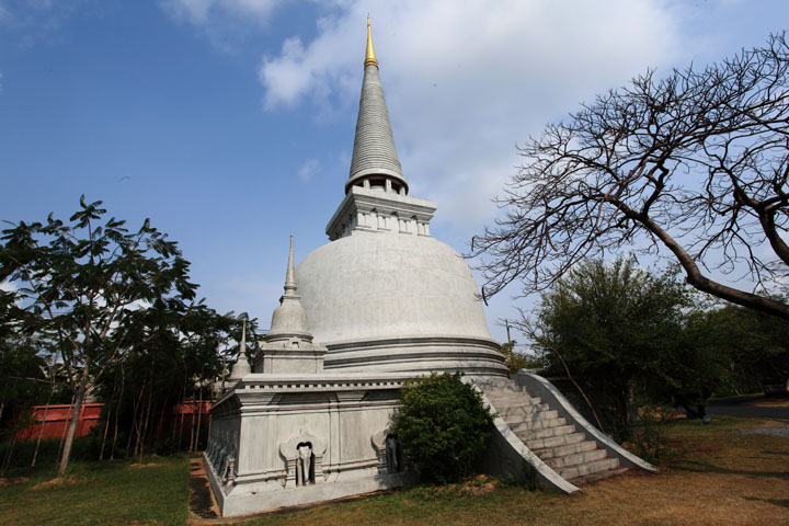 Stupa of Phra Maha That, Chaiya, Surat Thani The Phra Maha That is one of the most sacred and important monasteries in the south of Thailand. The structure of this stupa is similar to the Chandi Pawana Chedi in Indonesia, the mondop style chedi, which was modeled after Chandimendut Chedi of Java. |