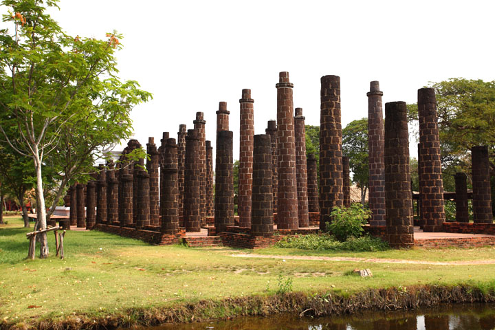 The Grand Hall of Wat Maha That, Sukhothai The Grand Hall of Wat Maha That, Sukhothai, north Thailand. A lot of columns are in line. |