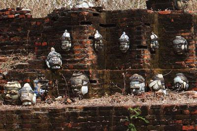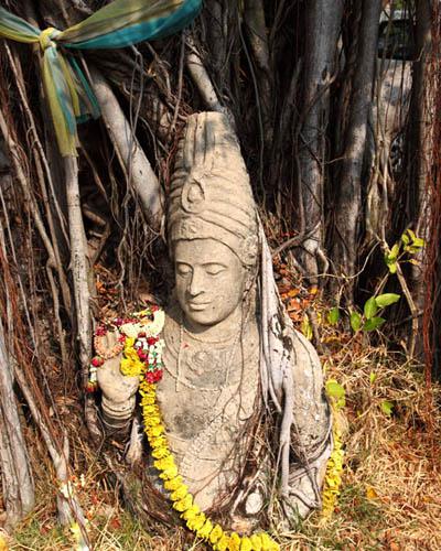 Pallava Group of Images, Phang-nga The images of the Hindu deities, stood out of the trunk of a tree that had grown around them. These images are kept at the Nakhon Si Thammarat National Museum. |
