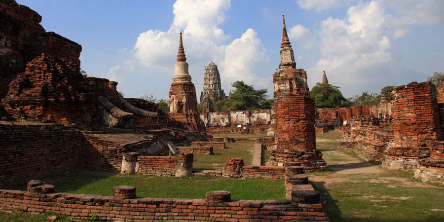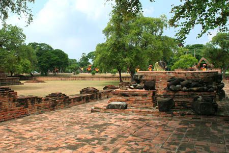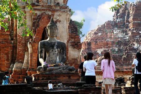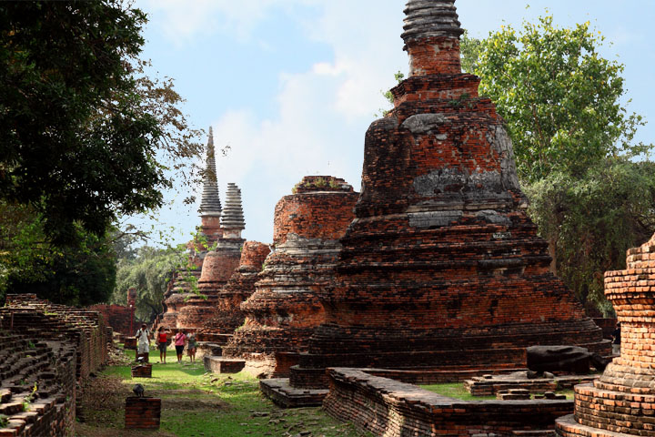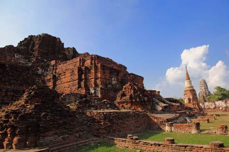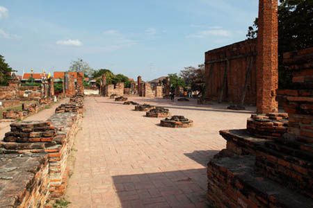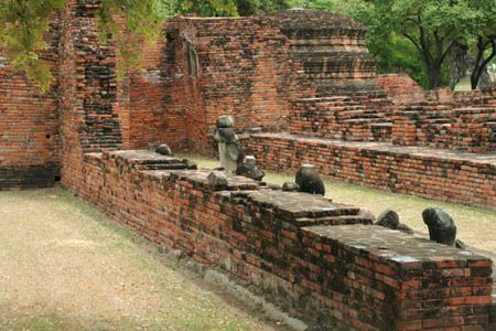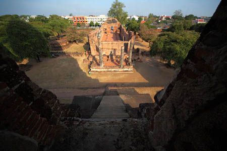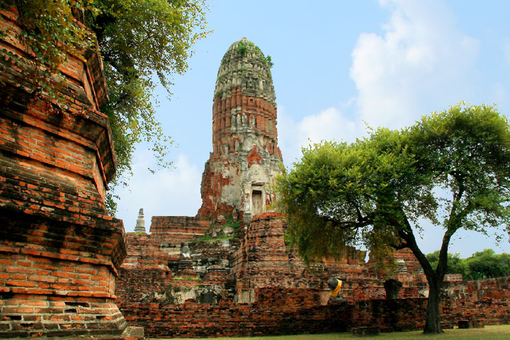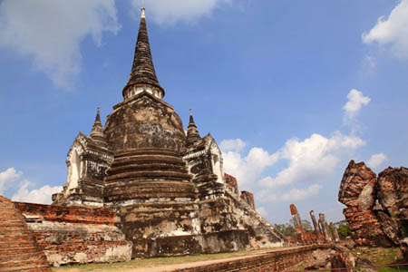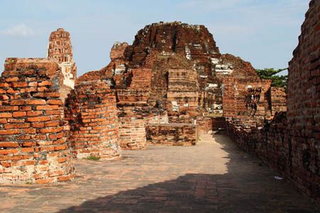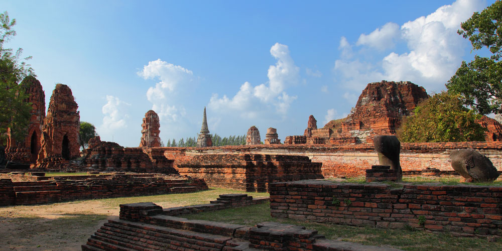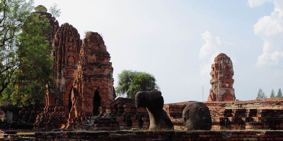 The Ayuttaya city is surrounded by Chao Phraya river (Menam Chao Phraya) and its branches. The old buildings were destroyed because of a lot of fights with Burma during the Ayutthaya period.