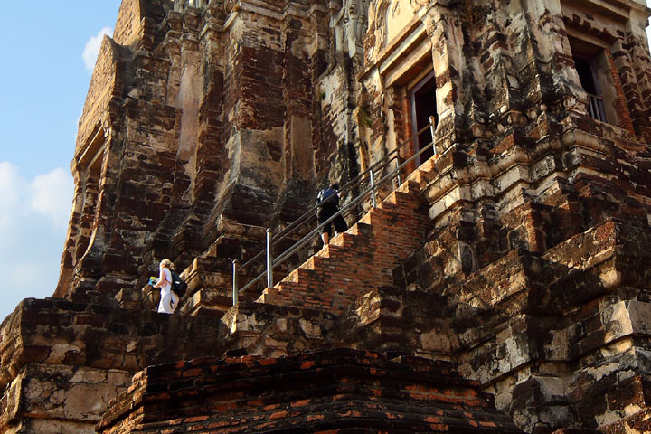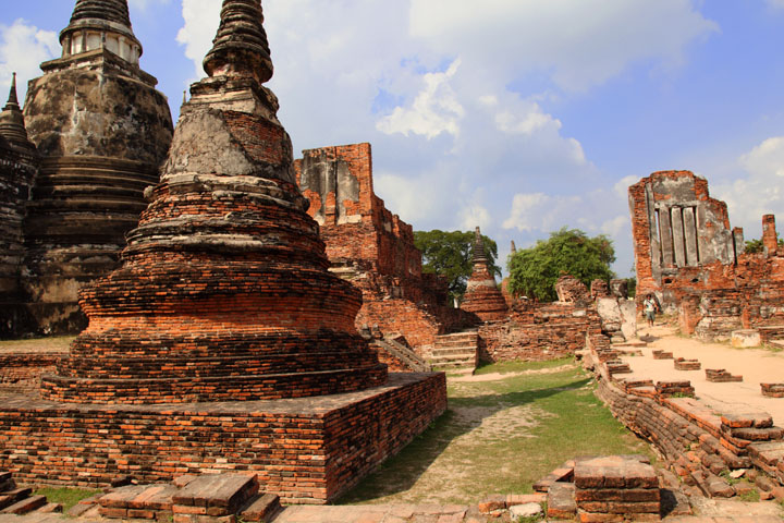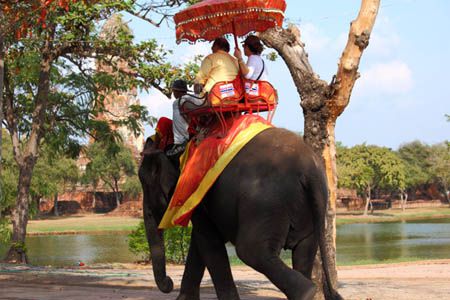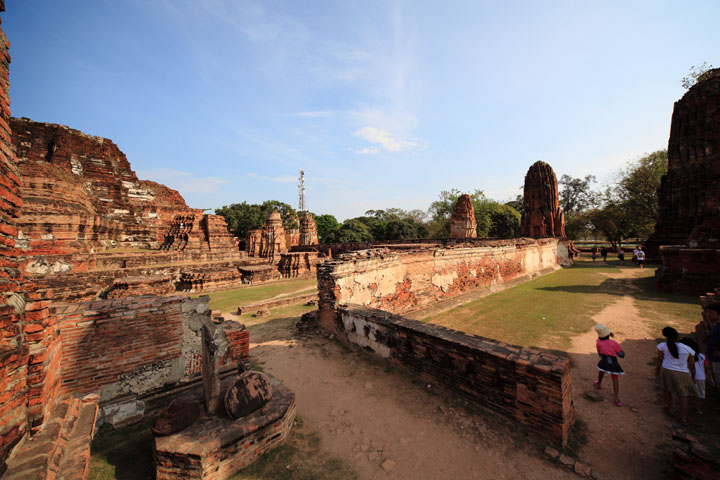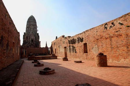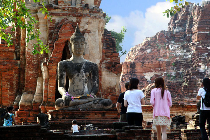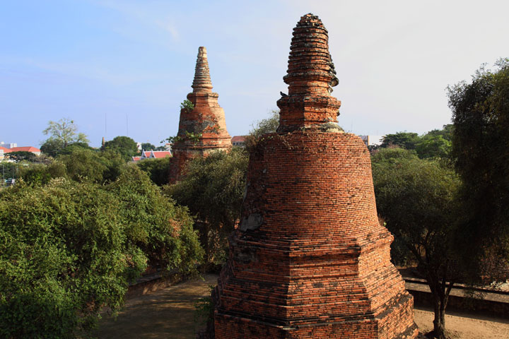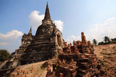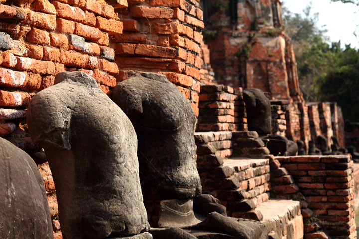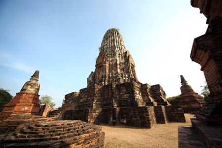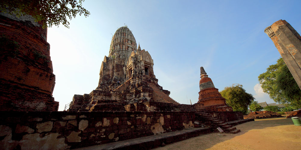 The Ayuttaya city is surrounded by Chao Phraya river (Menam Chao Phraya) and its branches. The old buildings were destroyed because of a lot of fights with Burma during the Ayutthaya period.