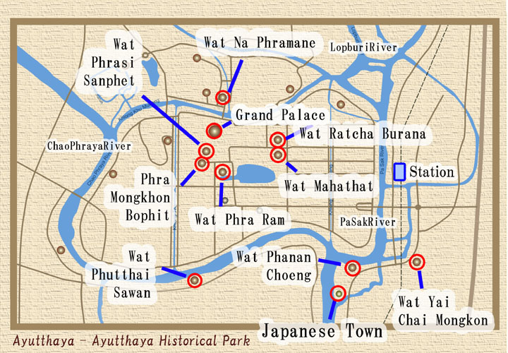 Ayuttaya on the map (80 km north of Bangkok) |