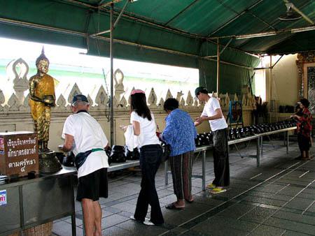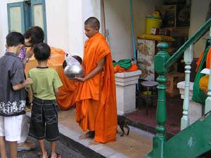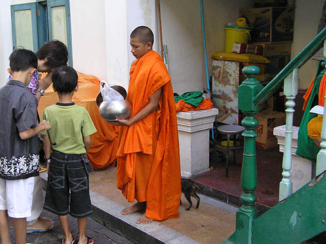 Tambun 1 (Some visitors are giving some food as an offering to a monk. This is called " tambun " to accumulate virtues.) |
