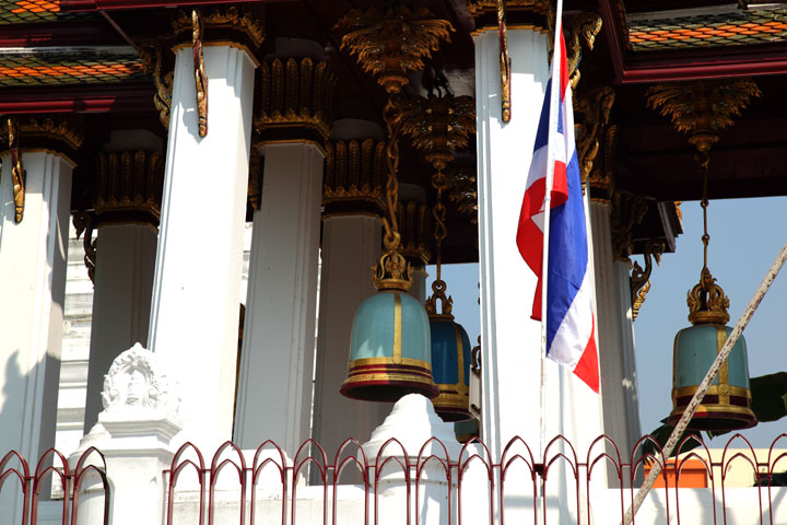 called "Wat Bang Wa Yai" and was built during the Ayutthaya period (1351-1767). It's located on the west bank of the Chao Phraya River in Bangkoknoi district, facing the Grand Palace.In 1769, the temple was appointed to be a second-class royal temple by King Taksin The Great of the Thonburi Kingdom (1767-1782), and Phra Tripitaka (Buddhist Scriptures) was brought from Nakhon Si Thammarat province and a Buddhist council was held to revise it. The temple was rebuilt during the reign of King Rama I (1782 - 1809) at the end of the 18th century, and a large bell was found during some construction at the temple. The bell was moved to the Temple of the Emerald Buddha, and instead, five smaller bells were donated to the temple. This is why the temple is called Wat Rakhang (Temple of the Bells). There is a library (or Ho Trai in Thai) where Buddhist Scriptures are kept and that was once the residence of King Rama I before he was crowned. (New Years of 2010) |