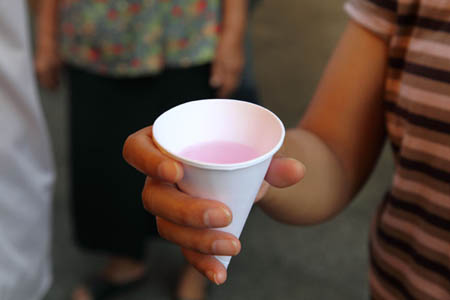 | You can drink water colored pink, called "Naam Yaa Uthai". | Praying while filling oil. | ||