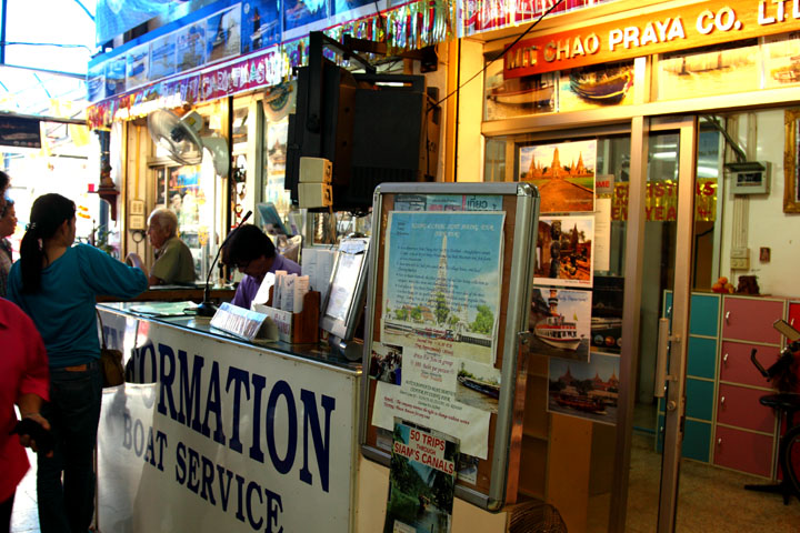 | You can ride on the boat here. | The building over there is the famous temple "Wat Rakhang". | ||