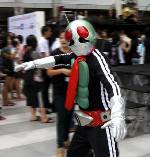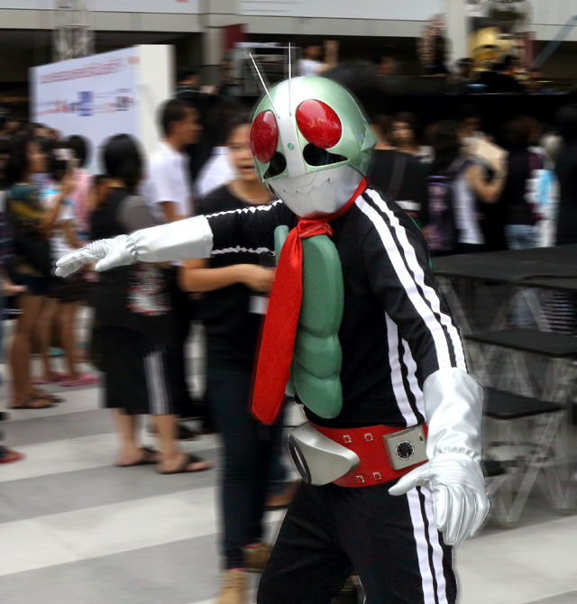| You would see soooo many cosplayers here and there in this event ! It was a little funny because I'd never seen a lot of cosplayers at once like this and it made me feel that they thought showing a lot of cosplayers was the Japanese culture. Maybe there was a cosplayer event in this festa, I guessed. They showed their favorite poses for you when you tried to take pictures of them. Cool ! (I'm not used to this kind of situation. I was too shy to take a picture from their front, just took them from their side or from a distance. Haha.) Personally, I was happy with Kamen Rider, one of the famous Japanese TV hero among kids, created in 1970's. This is the first Kamen Rider because he has two lines on the side of his body. You'll see cosplayers in the event below. They are only some examples. Do you know what they are ? |