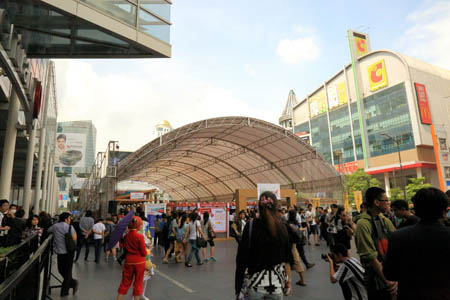 You can visit this CentralWorld by BTS SkyTrain: get off Siam or Chit rom station, then walk for several minutes on a pedestrian way called "Skywalk" connecting the stations and Central World. When I went there last time, Japan Festa in Bangkok 2013 was being held. This page shows pictures mainly of the event. Now, here we go !