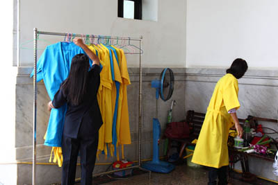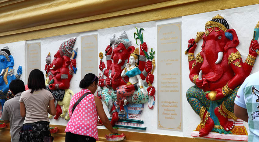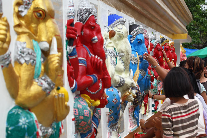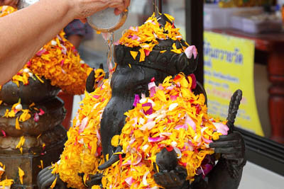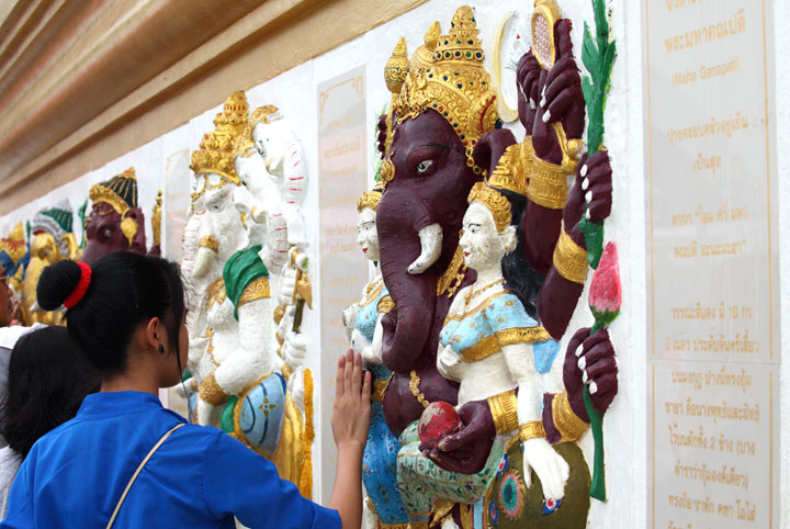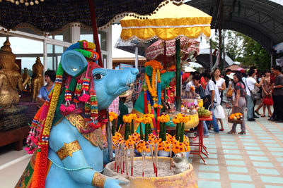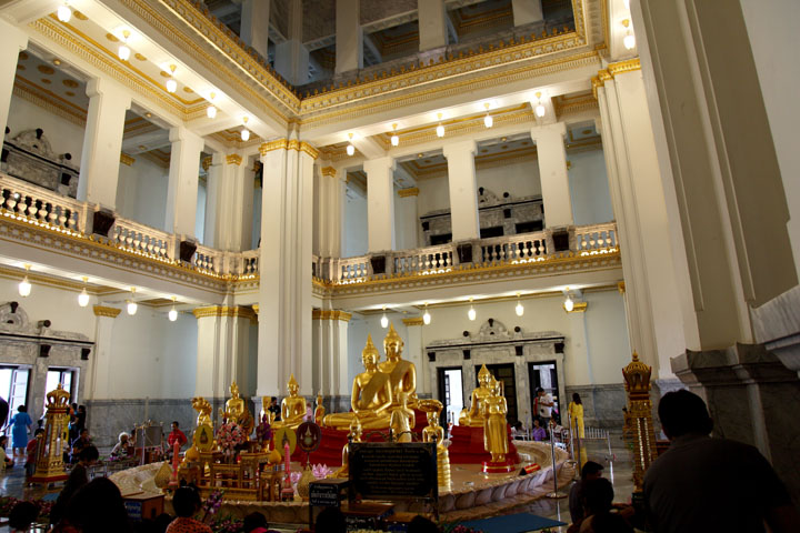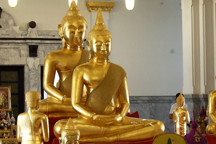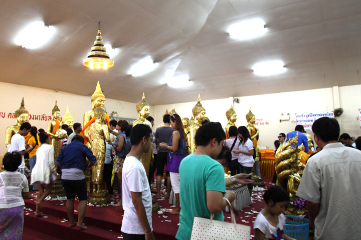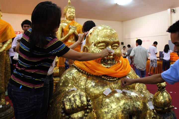 | Next to the main hall 3 A lot of Buddha images are housed. People pray and put gold leaves on the images. |