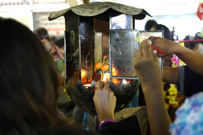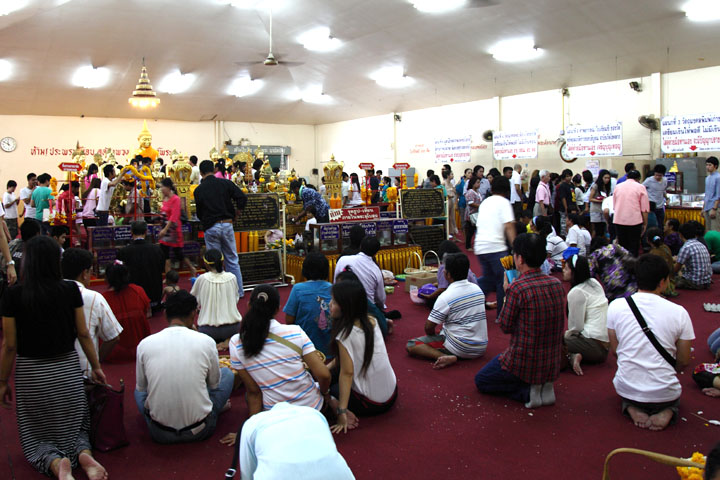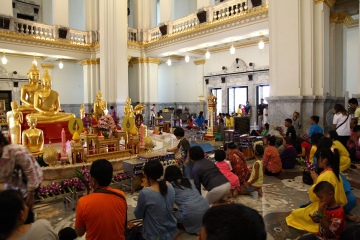 | The scene in the main hall 3 A lot of visitors pay respect to the Buddha images. |