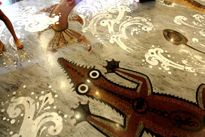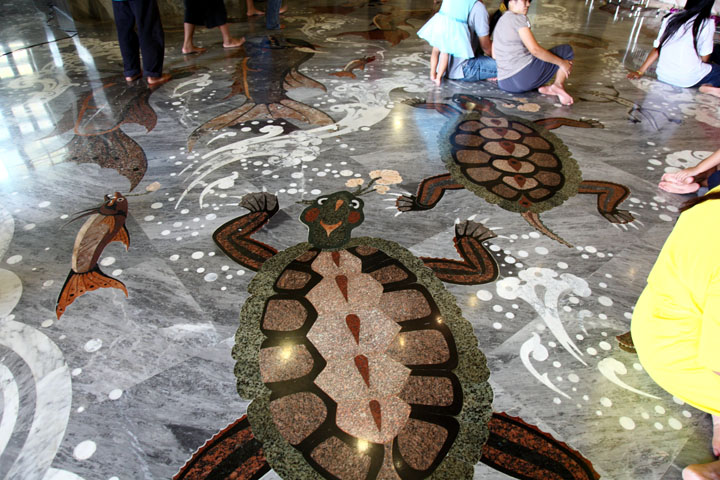 The scene in the main hall 4 The stone floor is designed with various patterns such as tortoise and other animals. |