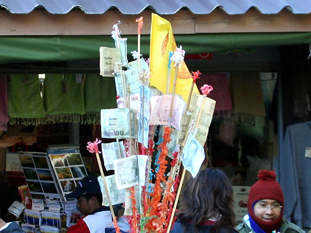 (If you look up, you will see Buddhist paintings all around the roof.) |