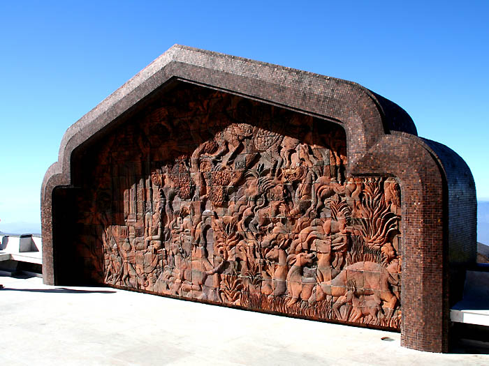 altitude on the mountaintop, and around the summit, there are two monuments;