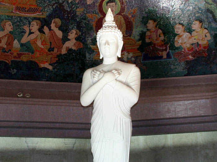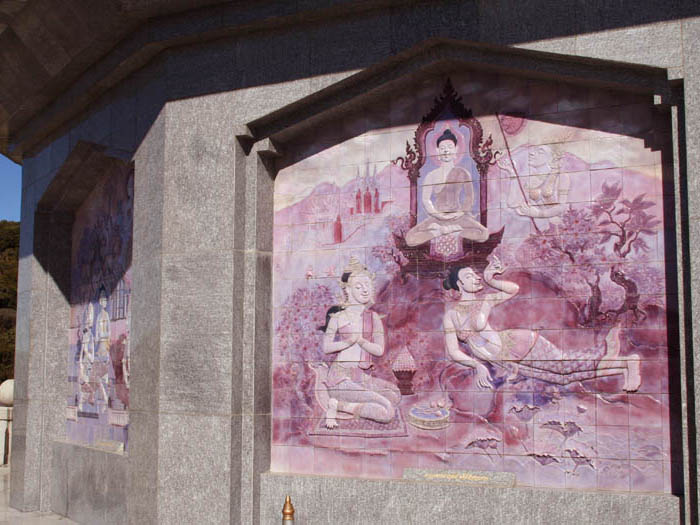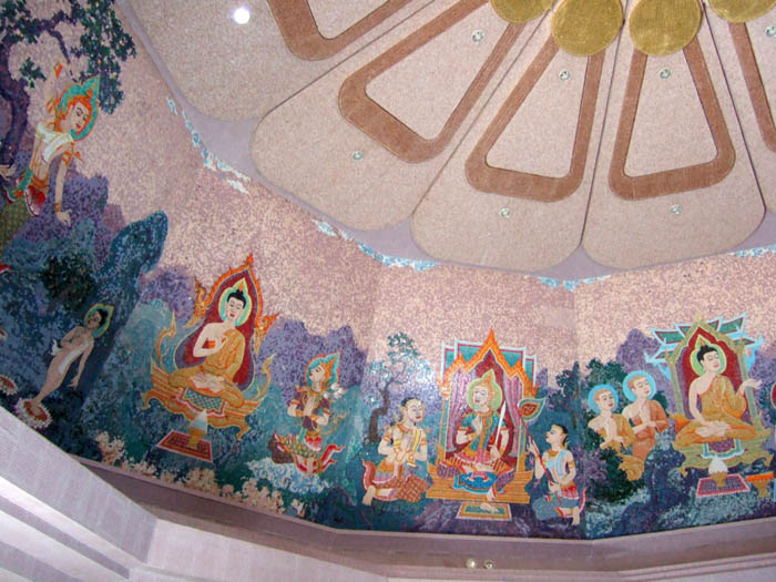 (If you look up, you will see Buddhist paintings all around the roof.)