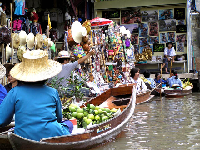 Damnoen Saduak Floating Market. A lot of people enjoy it.