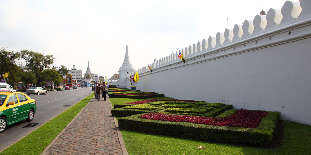 Around the Grand Palace, big streets with well-trimmed shrubbery (like
