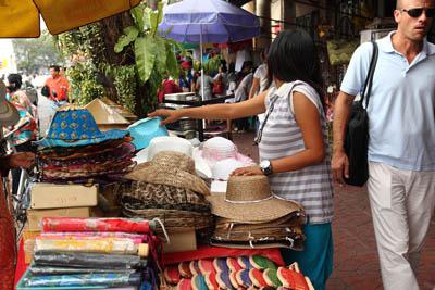 the picture above) and a lot of shops for visitors can be seen.Also, you'll see buses and taxis on the street, of course, the Thailand's special and famous vehicle "Tuk-Tuk"s are rushing around. |