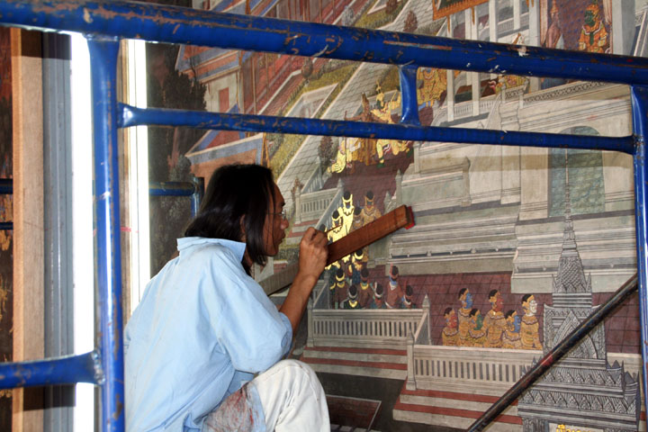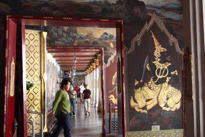 | Paintings 1 Paintings in the galleries surrounding the temple. They are from Ramakien, the Thai version of the Indian Ramayana. (The picture above is my favorite) |