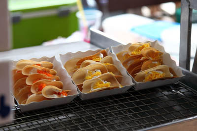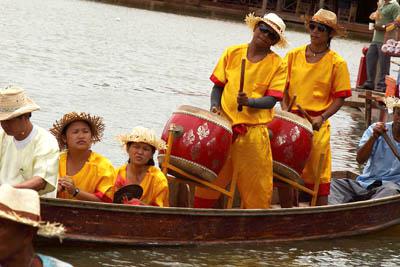 "Damnoen, the morning market" in Ratchaburi, "Ampawa floating market" in Samut SongKhram, and Pattaya Floating Market, called "Talad Nam Si Pak", and here in Hua Hin, they also have it.It looks still new, and the market called "Sam Phan Nam Floating Market". This market is specially for tourists, not for locals for their daily lives, but you can enjoy shopping and seeing around the market. (Aug in 2011) |