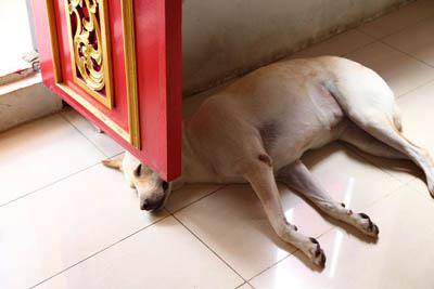 A sleeping dog Sleeping around the entrance door. Be careful not to step on. |
