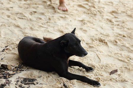 | The goddess is offered lingams or lingas (male organ). | Curious shaped rocks around. I want to know how they were made like this. | A dog on the beach. A big black dog was relaxing there. |