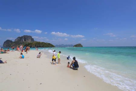 time. (How wonderful ! :D) About one hour flight from Bangkok. (Around the end of January, 2014)As the neighboring province, Pang Nga, Krabi has many islands, more than 130 islands, big and small. A lot of tourists from all over the world visit here to enjoy the beauty of the archipelago which have white sandy beaches, clear sea, and coral.
