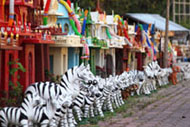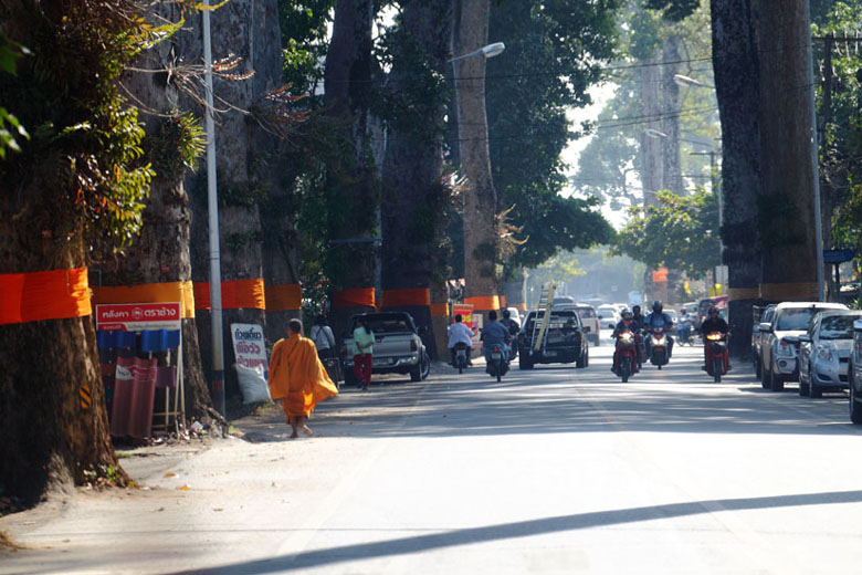 The town is very peaceful, situated along Kuang River (tributary of Ping River), about 30 kilometers and about 30 minutes by car from Chiang Mai, the major city in northern part.(When you go to Lamphun by car from Chiangmai, you'll see a lot of big trees on the both sides of the street which were offered by a prince of Chiang Mai in 1899, blessed with Buddhist orange swathes.)