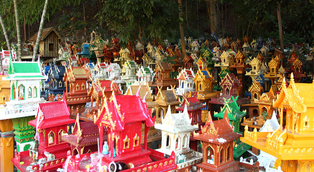 | So many offerings Offerings all around. Each of them has a small house. This can be seen often in Thailand. Very curious. |