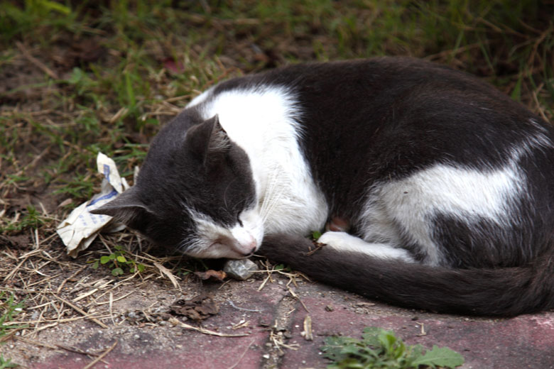 | Horses in a row. | This is real. Someone keeps them around here ? | This is a real cat. Relaxing sleeping. |