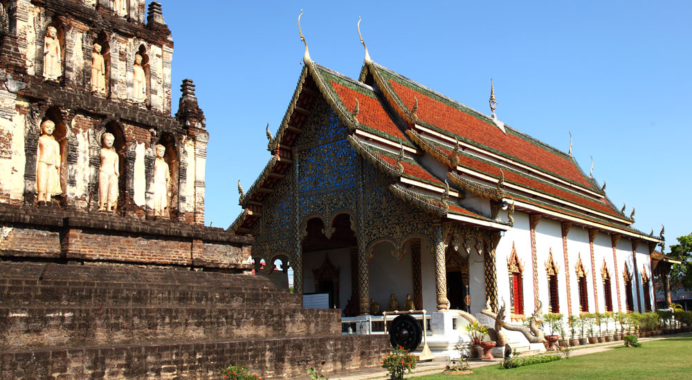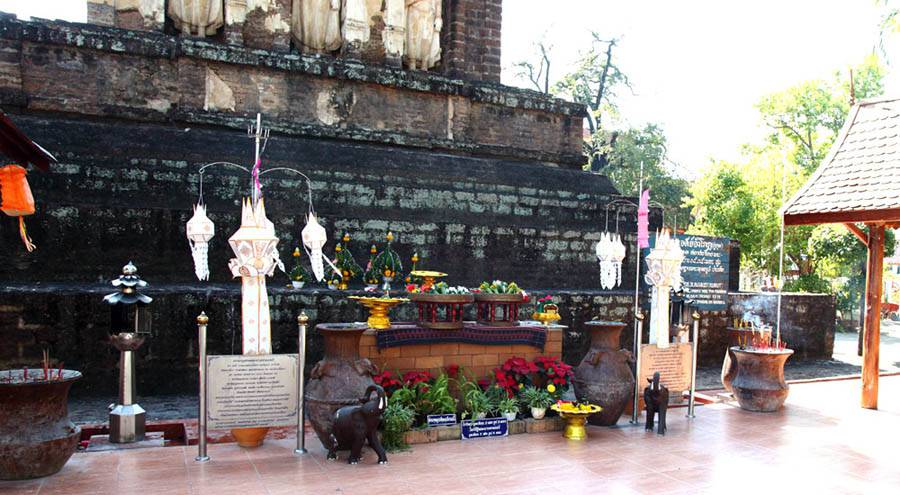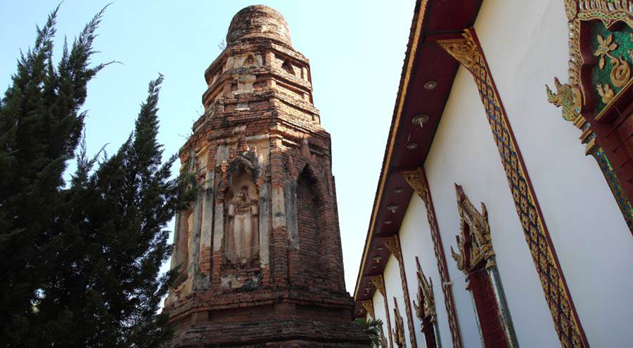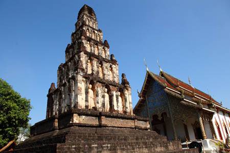to the Northwest of the famous royal temple Wat Prathat Haripunchai which is situated around the center of Lamphun city.This temple seems to have been constructed around the 13th century A.D. during Haripunchai kingdom period. It has two famous chedis (pagoda or Buddhist stupa):