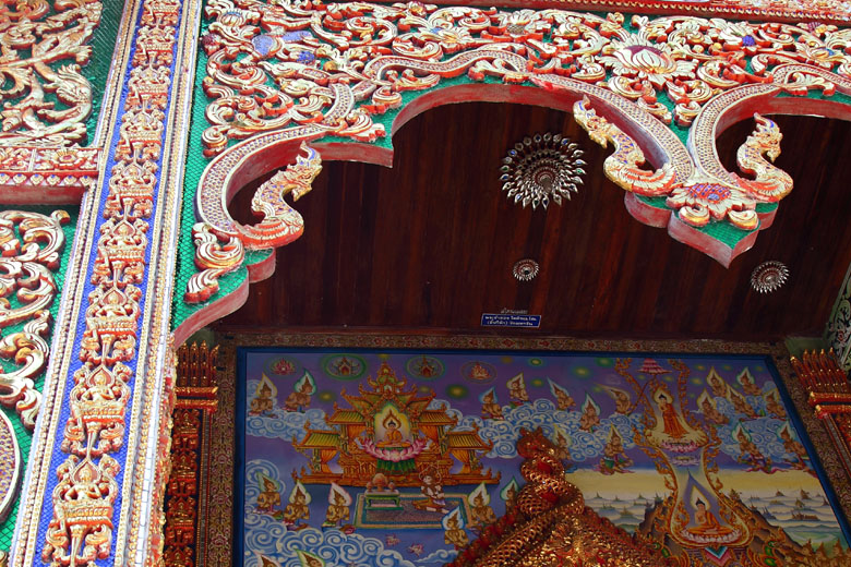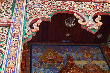 Decoration around the entrance. Elaborate. Buddhist paintings are painted. |