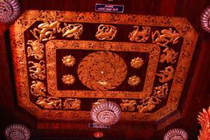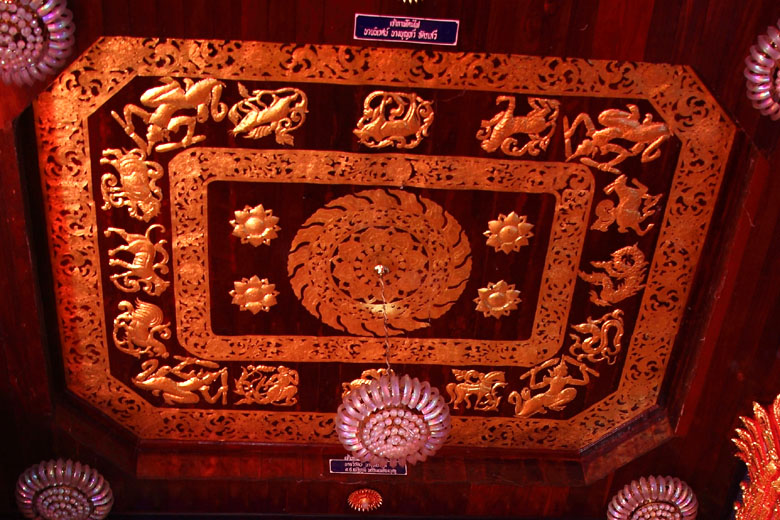 | The decoration above the Buddha images. Each corner has a same figure, and others are zodiac signs ? |