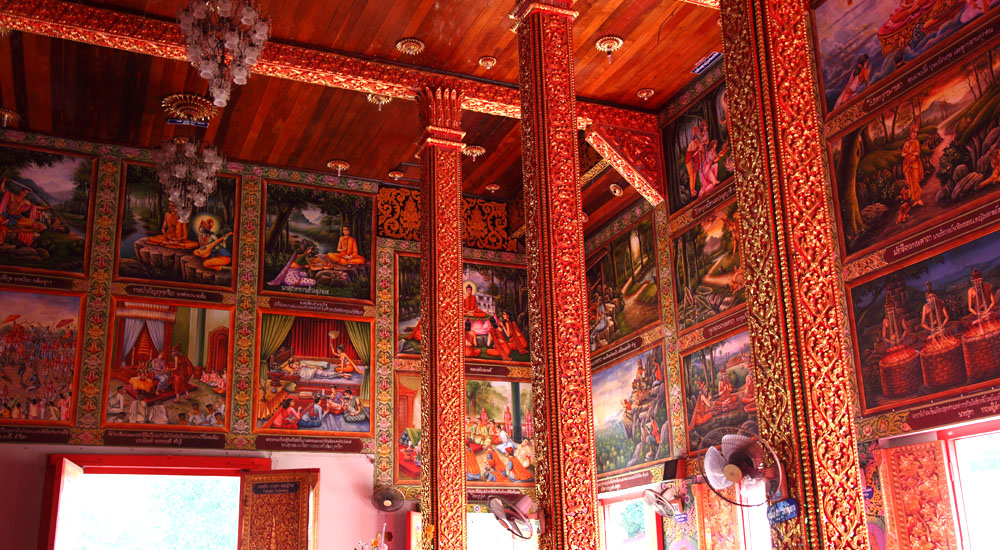| Side wall. All of it is decorated with Buddhist paintings as well. |