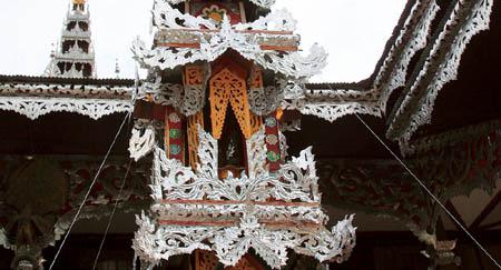 A royal temple, Wat Chong Kham, a wooden building built in the Burmese